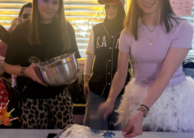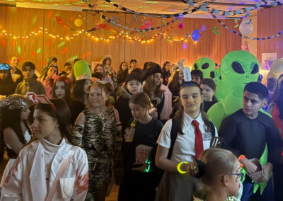 Der Medienraum wurde passend in eine bunte Partylandschaft verwandelt: Luftballons, Discolichter, Lichterketten und Girlanden sorgten für eine fröhliche Stimmung. Das Highlight der Party war zweifellos das Karaokesingen, das viele mutige Sängerinnen und Sänger zum Mikrofon lockte. Weitere Überraschungen waren die Fotobox sowie der Verkauf von Popcorn und leckeren Cocktails.