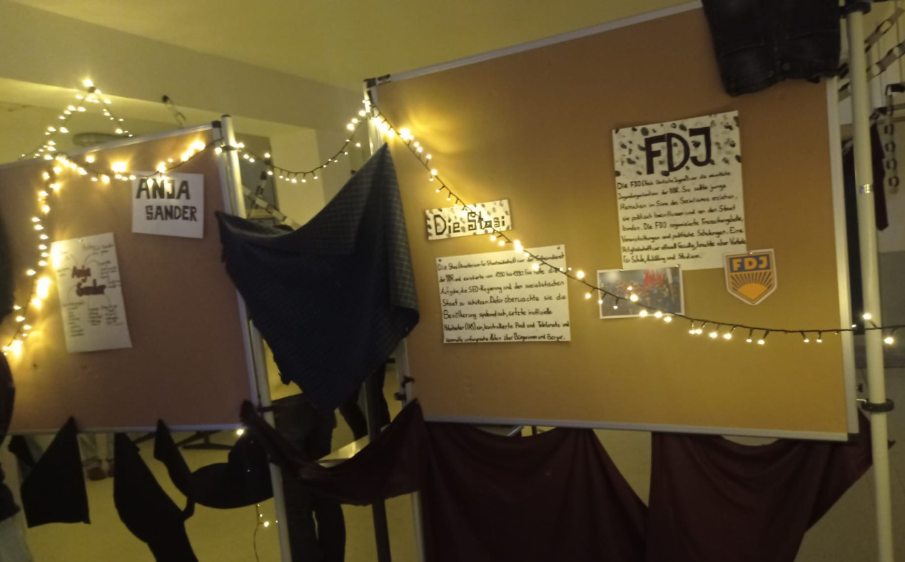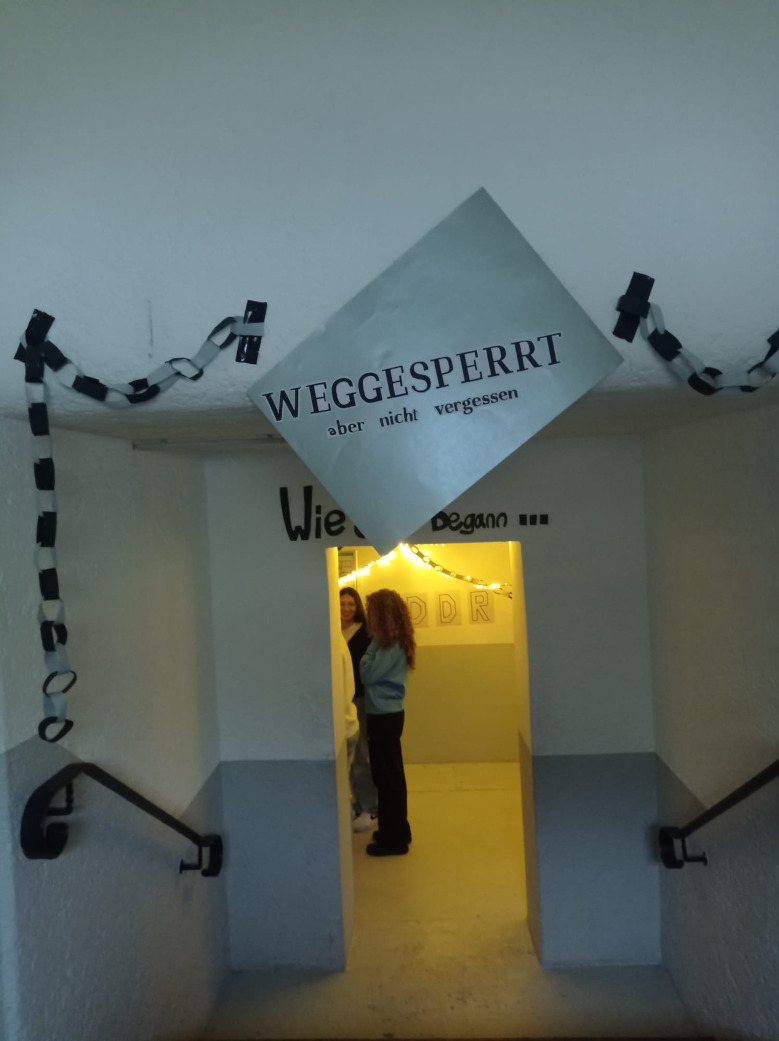 Im Rahmen des Projektes stellten die Neuntklässlerinnen Natalia Kaminska, Ana Janjusic, Nina Janjusic und Sanja Jehle das Buch “Weggesperrt” von Grit Poppe in einem Gallery Walk dar. Natalia, Ana und Nina hatten diese Idee, da sie sich im Deutschunterricht bei einem Gallery Walk Informationen zum Thema Gedichte angeschaut hatten. Außerdem kamen sie durch ihre ehemalige Deutschlehrerin auf die Idee, genau dieses Buch zu nehmen, da es einen tiefen Hintergrund hat und in einer schrecklichen, aber wichtigen Zeit der deutschen Geschichte spielt.