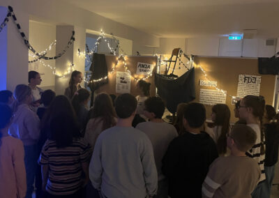 Ebenso beeindruckend war die intensive Auseinandersetzung mit der wichtigen und tiefgründigen Thematik des Buches. Diese in einer so eindrucksvollen Form widerzuspiegeln, ist ihnen hervorragend gelungen. Der Gallery Walk war nicht nur informativ und interessant, sondern auch emotional und berührend – eine eindringliche Erinnerung an das, was viele zu vergessen drohen und damit ein wertvoller Beitrag zur Aufarbeitungs- und Erinnerungskultur.